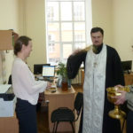 По окончании богослужения отец Роман окропил Крещенской водой главный корпус одного из старейших вузов, рабочий кабинет ректора, а также местную типографию. Затем священнослужитель обратился со словами поздравления по случаю праздника Богоявления к ректору Н.И. Бухтоярову, поблагодарив его за активное всестороннее содействие в устроении домового храма при университете.